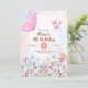 Invitación de cumpleaños número 9 de Mariposa acuarela | Plantilla digital editable de jardín floral rosa púrpura | Invitación de fiesta para niña de nueve años de primavera en tonos pastel suaves