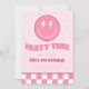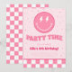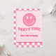 ¡Divertida invitación elegante y feliz de color rosa! Un tema divertido y retro, con tonos rosas, rayo, estrellas y patrón a cuadros.