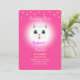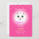 Cute gato blanco y estrellas en la invitación de cumpleaños de fiesta de niña magenta rosa. El texto está listo para ser personalizado.