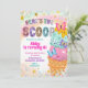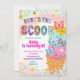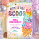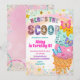 Invitación de cumpleaños de niña con purpurina pastel y helado, Invitación de cumpleaños 'Here's The Scoop', Fiesta de cumpleaños infantil de postre dulce editable