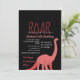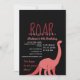 Invitación de cumpleaños de niña negra trendy, femenina y simple, con silueta de dinosaurio rosa y tipografía moderna. ¡RUGE!