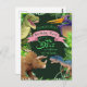 Invitaciones de cumpleaños de dinosaurios con un fondo verde liso simple, follaje verde de la jungla, una colección de dinosaurios y una plantilla de cumpleaños personalizada moderna y fácil de personalizar.