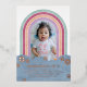 Invite a amigos de todas las edades a la fiesta de cumpleaños de su hijo con esta invitación retro temática. El diseño presenta una foto de un niño enmarcada por un arcoiris colorido. Los detalles del evento se colocan sobre un simple diseño de nube, y están rodeados por un puñado de margaritas apretadas en Relieve metalizado de oro o plata. La parte posterior de la tarjeta presenta un patrón diagonal en colores coordinados. Esta invitación también sería perfecta para una ducha de bebé.