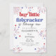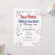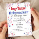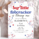 ¡Celebra tu pequeña chispa con esta invitación de cumpleaños "Nuestro pequeño petardo se está volviendo uno"! Con fuegos artificiales rojos, blancos y azules, este divertido y festivo diseño es perfecto para un bash de cumpleaños del 4 de julio. Fácilmente editable para nombres, fechas y detalles de fiestas - ¡es un petardo para el gran hito de tu pequeño!
