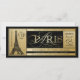 Invitación de cumpleaños de París con hermosa Torre Eiffel y escritura dorada en un fondo de estilo de tarjeta de embarque. Puedes agregar texto al área de la Torre Eiffel y puedes cambiar el fondo y el color del texto. Esta elegante invitación de cumpleaños de París en negro y dorado se personaliza fácilmente para tu evento simplemente agregando tus detalles. Este es un diseño impreso sin lámina real.
