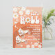 Celebra con estilo con esta invitación de cumpleaños de patinaje sobre ruedas retro que presenta patines divertidos, margaritas y tonos vibrantes de naranja-melocotón. Perfecta para una divertida fiesta de cumpleaños número uno, este diseño captura paz, amor y encanto nostálgico. Las fuentes en negrita y los acentos caprichosos la hacen destacar mientras proporcionan todos los detalles esenciales del evento. Una invitación única y llamativa que establece el tono para una celebración alegre.