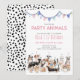 Es el cumpleaños de tu cachorro, ¡así que es hora de llamar a los animales de la fiesta! Invita a tus invitados especiales con esta adorable invitación de ilustración de acuarela que presenta un grupo de perros de varias razas, todos vestidos con sus mejores galas. Un diseño fácil de personalizar, utilizando nuestra plantilla prediseñada, en tipografía escrita a mano. La parte trasera de la tarjeta presenta un diseño dibujado a mano en negro y blanco. Copyright Elegant Invites, todos los derechos reservados.