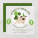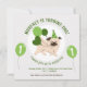 Un encantador perro está adornado con globos verdes en forma de corazón.