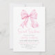 Dulce cumpleaños Pink Bow Invitación para una estética del arco moderno celebración de 16 años