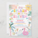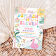 Haz un gran impacto con esta vibrante invitación de cumpleaños para una fiesta tropical en la piscina, perfecta para celebraciones de verano. Con ilustraciones divertidas de flotadores de flamencos y cisnes, piñas, rodajas de sandía, gafas de sol y flores tropicales, establece el tono para un día lleno de diversión. Este diseño alegre es ideal para cumpleaños de niños, fiestas en la piscina o reuniones de verano, y aporta un ambiente colorido y festivo a tu evento. Personalízalo fácilmente con los detalles de la fiesta e impresiona a tus invitados con una invitación elegante y llamativa.