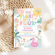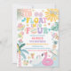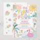 Crea un impacto con esta vibrante invitación de cumpleaños para una fiesta tropical junto a la piscina, perfecta para una celebración de verano. Con ilustraciones divertidas de flotadores de flamencos y cisnes, palmeras, helados, paletas y ambiente soleado de playa, este diseño es ideal para el cumpleaños de un niño. El diseño colorido establece el tono para un día lleno de diversión junto a la piscina, mientras que el texto personalizable asegura que cada detalle se adapte a tu evento. Una opción alegre y llamativa que deleitará a los invitados y creará emoción para el gran día.