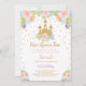 Invite a los huéspedes a una celebración real con esta invitación editable al cumpleaños de la princesa, que presenta un encantador diseño de castillo floral rosa. Perfecto para un fiesta con temática de cuento de hadas, esta invitación es el personalizable para adaptarse a los detalles de su evento.