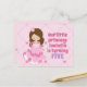 Esta adorable invitación de tarjeta postal de cumpleaños de princesa rosa presenta a una hermosa niña morena que lleva un hermoso vestido de baile rosa. Personalice esta divertida invitación de fiesta infantil con el nombre de su hijo en hermoso púrpura y escriba sus datos en el reverso.