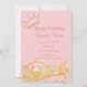 INVITACIÓN DEL CUMPLEAÑOS DE PRINCIPIO ROJO Y ORO CON DISEÑO DE TRANSPORTE, DETALLES DE PURPURINA DE ORO.