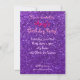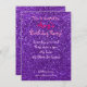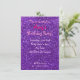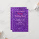 Plantilla de invitación de cumpleaños con fondo falso purpurina púrpura muy brillante, brillante y ondulado con fuente rosa