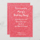 Plantilla de invitación de cumpleaños con un fondo purpurina rosa fino muy brillante, brillante y ondulado