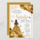Invitación de cumpleaños de Quinceanera floral de oro