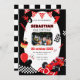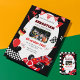 Celebra el día especial de tu pequeño corredor con esta invitación de cumpleaños de raza roja y negra que incluye una plantilla de foto de personalizable. Perfecto para los aficionados a los coches y los vaporizadores jóvenes, esta invitación le permite añadir el nombre, la edad y una imagen favorita de su hijo. Hacerlo un evento memorable emparejándolo con decoraciones de temática racial y suministros de fiesta. ¡Pídelo ahora y hágalo suyo!