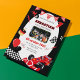 Celebra el día especial de tu pequeño corredor con esta invitación de cumpleaños de raza roja y negra que incluye una plantilla de foto de personalizable. Perfecto para los aficionados a los coches y los vaporizadores jóvenes, esta invitación le permite añadir el nombre, la edad y una imagen favorita de su hijo. Hacerlo un evento memorable emparejándolo con decoraciones de temática racial y suministros de fiesta. ¡Pídelo ahora y hágalo suyo!