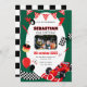 Celebra el día especial de tu pequeño corredor con esta invitación de cumpleaños de raza roja y negra que incluye una plantilla de foto de personalizable. Perfecto para los aficionados a los coches y los vaporizadores jóvenes, esta invitación le permite añadir el nombre, la edad y una imagen favorita de su hijo. Hacerlo un evento memorable emparejándolo con decoraciones de temática racial y suministros de fiesta. ¡Pídelo ahora y hágalo suyo!
