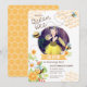 Invitación de cumpleaños de la Reina Abeja - Presentamos nuestra adorable invitación de cumpleaños de la reina abeja. Con simpáticas abejas volando alrededor de flores frescas, dejando un rastro zumbante en forma de corazón. En el centro está una foto de tu pequeña reina abeja, complementada con un delicioso fondo de panal de miel. Esta invitación seguramente quitará el aguijón de tus preparativos para la fiesta. Crea mucha miel y un enorme zumbido con nuestra invitación de cumpleaños de la reina abeja.