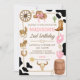 Invitación de cumpleaños de Rodeo Cowgirl editable. Giddy y celebrar con estilo con esta editable Invitación de cumpleaños de Rodeo Cowgirl! Con un divertido tema occidental con huellas de vacas, acentos rosados, botas de vaquero y gráficos gorras, es perfecto para el día especial de tu vaquera. Personalice fácilmente los detalles utilizando la plantilla editable. Ideal para fiestas de rodeo, occidente o de cumpleaños de temática rural.