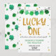 Invitación de cumpleaños de San Patricio. Afortunado Un Primer Cumpleaños. Todos los diseños son © The Paper Trail Co.
