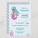 Una linda Invitación de Fiesta de Sirena Negra en colores suaves con diseño de escamas de sirena en la parte posterior. Perfecta para una fiesta de cumpleaños con tema de sirena o bajo el mar para una niña con piel negra o morena.