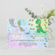 Invitación de cumpleaños de sirenas y dinosaurios.