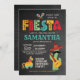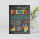 Invitación de cumpleaños con temática mexicana. Muy colorida y original con un cactus tocándo guitarra, una llama y unas maracas.