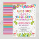 Traiga la fiesta al gran día de su pequeño con esta divertida invitación de cumpleaños Three-esta. Perfecta para una fiesta de cumpleaños número 3 llena de tacos, música y color. Esta plantilla editable presenta un diseño inspirado en México, colores vibrantes e ilustraciones festivas que marcan el tono para una celebración alegre.