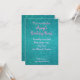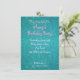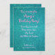 Plantilla de invitación de cumpleaños con fondo falso turquesa/verde azulado/aqua purpurina muy brillante, brillante y ondulado con fuente rosa
