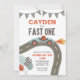 Fast One Race Car Invitación de primer cumpleaños con auto de carrera retro azul.
