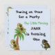 Una linda invitación para el cumpleaños de un mono. Tres pequeños monos dando vueltas en esta divertida invitación a la fiesta. Personalizar con toda la información que desee.