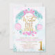 Invitación de cumpleaños de un solo campo de invierno con caligrafía de oro Invitación de invierno dulce y brillante invitación de cumpleaños de invierno a tierra firme con una corona de invierno, caramelos rosa brillante, copos de nieve, pinos y un brillante arco rosa. Esta invitación de cumpleaños de invierno en un país es una forma muy agradable de organizar una colorida fiesta de cumpleaños de chica de invierno con un tema de golosinas.