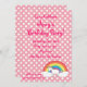 Invitación de cumpleaños con el patrón de puntos de polka rosa de unicornio y arcoiris
