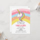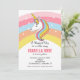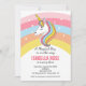 Invitación de cumpleaños de unicornio con fondo de arcoíris