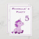 Una postal de unicornio para la celebración de cumpleaños de un niño. Una tarjeta de invitación de cumpleaños personalizable. Todos los datos están escritos en el reverso de la postal. Esta invitación tiene un pequeño y lindo unicornio rosa y morado sentado y mirando el número de edad. El unicornio rosa hace que sea genial como invitación a una fiesta de cumpleaños para una niña y sus amigas.