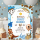 Invitación de cumpleaños para el primer rodeo de vaquero azul, invitación de cumpleaños para el 1er cumpleaños del Salvaje Oeste, invitación de cumpleaños de cumpleaños occidental editable con patrón de vaca