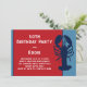 Invitación de cumpleaños de langosta azul en papel kraft. Imagen de langosta azul oscuro en el lado derecho del papel plano horizontal, con muchas opciones de papel y mejoras. Un panel rojo contiene texto impreso en blanco (parece beige en papel kraft) y azul marino. ¡Este diseño es perfecto para celebrar su cumpleaños con un gran festín de mariscos! También elige la descarga instantánea si lo prefieres.