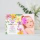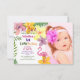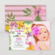 Colorida, brillante y adorable invitación de cumpleaños de verano tropical con foto personalizada y flores de acuarela.