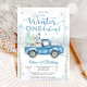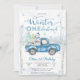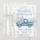 Celebra el día especial de tus pequeños con esta encantadora invitación de cumpleaños de Winter ONEderland. Con una escena nevada del bosque con abedules, copos de nieve y un camión azul vintage que lleva regalos y un muñeco de nieve, este diseño captura perfectamente la magia de una celebración de invierno. Las fuentes elegantes en azul helado y blanco añaden un toque festivo, lo que lo hace ideal para una fiesta de primer cumpleaños. Personaliza fácilmente con los detalles de tu evento y crea un recuerdo que tus invitados adorarán.