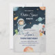 ¡Despega hacia la diversión con esta linda invitación de cumpleaños de astronauta! Con cohetes, planetas y un tema espacial divertido, es perfecto para las fiestas del espacio exterior de los niños. Personalice fácilmente con el nombre de su hijo y los detalles de la fiesta.