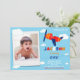 Foto Invitación de cumpleaños del avión con foto Invitación de avión de época con foto para niños y chicas fiesta de arriba y de afuera invitan a las moscas de la hora. Invitación de cumpleaños de temática de transporte para el primer cumpleaños de un niño pequeño con un avión y algunas nubes en el cielo azul alrededor. ¡Esta simple y simple tarjeta de invitación para hombres y mujeres es perfecta para el primer cumpleaños! Simplemente edite esta plantilla para hacer su propia invitación!