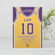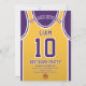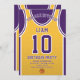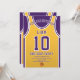 Celebra tu día especial con esta invitación de cumpleaños de Jersey de Baloncesto, diseñada para los verdaderos fans del baloncesto. Con un diseño jersey audaz inspirado en los icónicos colores morado y dorado, esta invitación es perfecta para niños, adolescentes y adultos que aman el juego. Personalízalo fácilmente con tu nombre, edad, detalles del fiesta e incluso número de equipo en sólo unos cuantos clics. Disponible en varios tamaños, impreso en papel de calidad superior con una amplia gama de acabados para coincidir con tu estilo. Elija entre diferentes tipos de papel, impresión rápida y envío rápido para que sus invitaciones lleguen a tiempo. Ya sea para un fiesta de temática deportiva o para una celebración de fans de Lakers, esta invitación es la manera perfecta de emocionar a sus invitados.