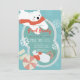 Esta encantadora invitación de cumpleaños "fiesta de piscina" incluye un oso polar con una bufanda roja a punto de saltar a la piscina, mientras que el otro oso polar con una capa roja es relajante y flota en una piscina de color azul turquesa con un tubo interior sobre fondo azul con copos de nieve. El reverso presenta fondo azul con nieve como patrones de puntos aleatorios blancos. Cambie el color de fondo tanto del frente como del reverso, y personalizarlo para sus necesidades. Pueden encontrar más productos de oso polar en mi tienda.