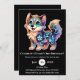 Un cachorro de lobo brillante con patrones azules giratorios y marcas florales, lleno de maravilla cósmica y encanto.