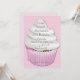 Invitación de cumpleaños con quequito rosa y blanco sobre fondo de polka rosa y blanco. Sólo personaliza el texto con los detalles de su fiesta. Las invitaciones vienen con sobres y tu elección de papel. Gráficos ©http://www.delightful-doodles.com/