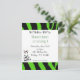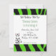 Una tira de cebra verde y negra adorable acentúa esta invitación a la fiesta de cumpleaños. Una linda cebra personalizado se sienta en la esquina. Personalizar como se desee.