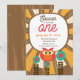 Celebra un precioso primer cumpleaños con esta encantadora invitación de búho del bosque. Con una dulce ilustración de búho, divertidos acentos florales y una acogedora paleta de colores retro, este diseño es perfecto para celebrar un cumpleaños "Uno". Ideal para fiestas con tema de bosque, animales o madera, esta invitación funciona maravillosamente para niños o niñas y es totalmente personalizable con los detalles de tu fiesta. Una forma cálida y caprichosa de invitar a amigos y familiares a celebrar un momento especial.